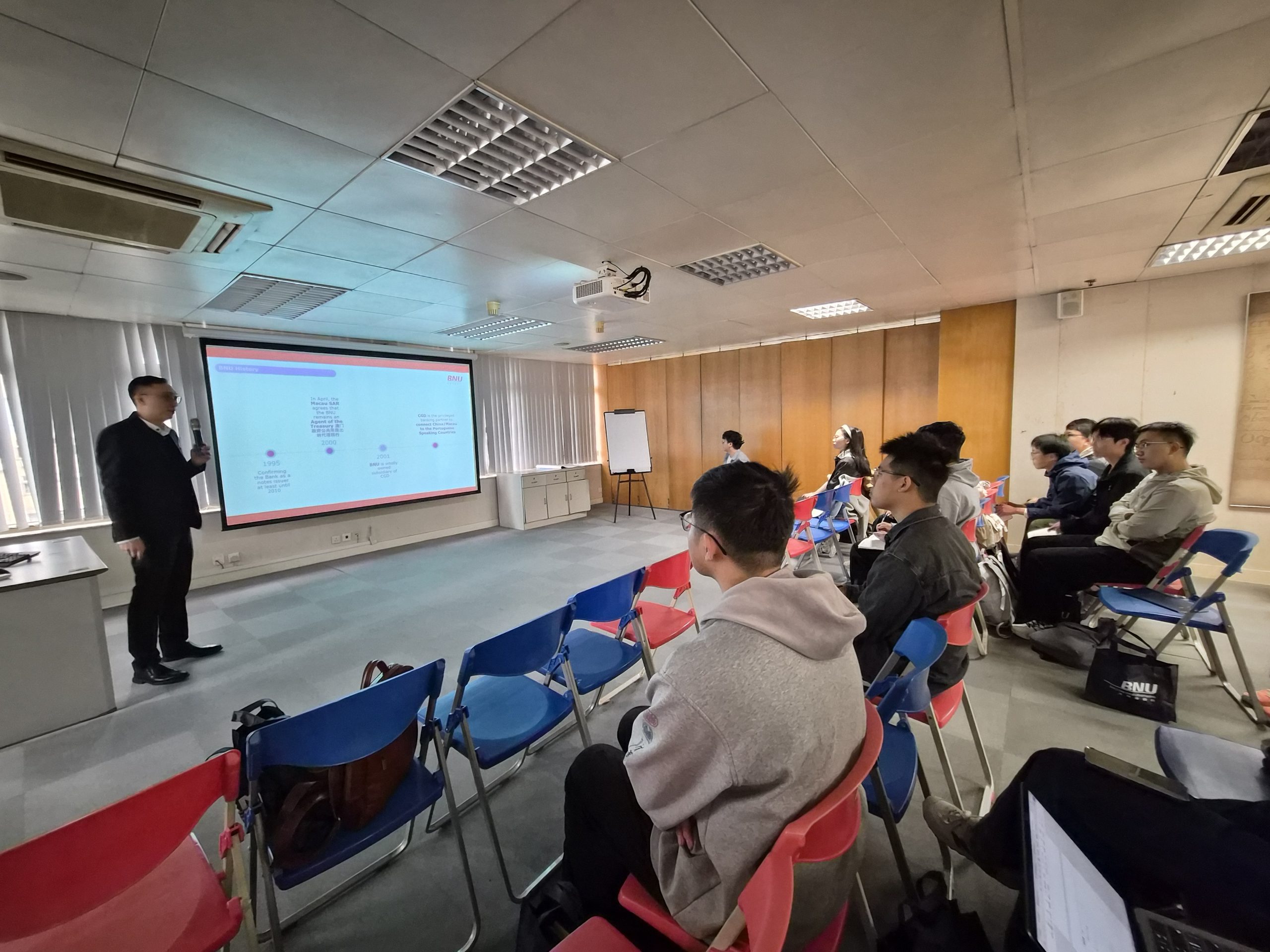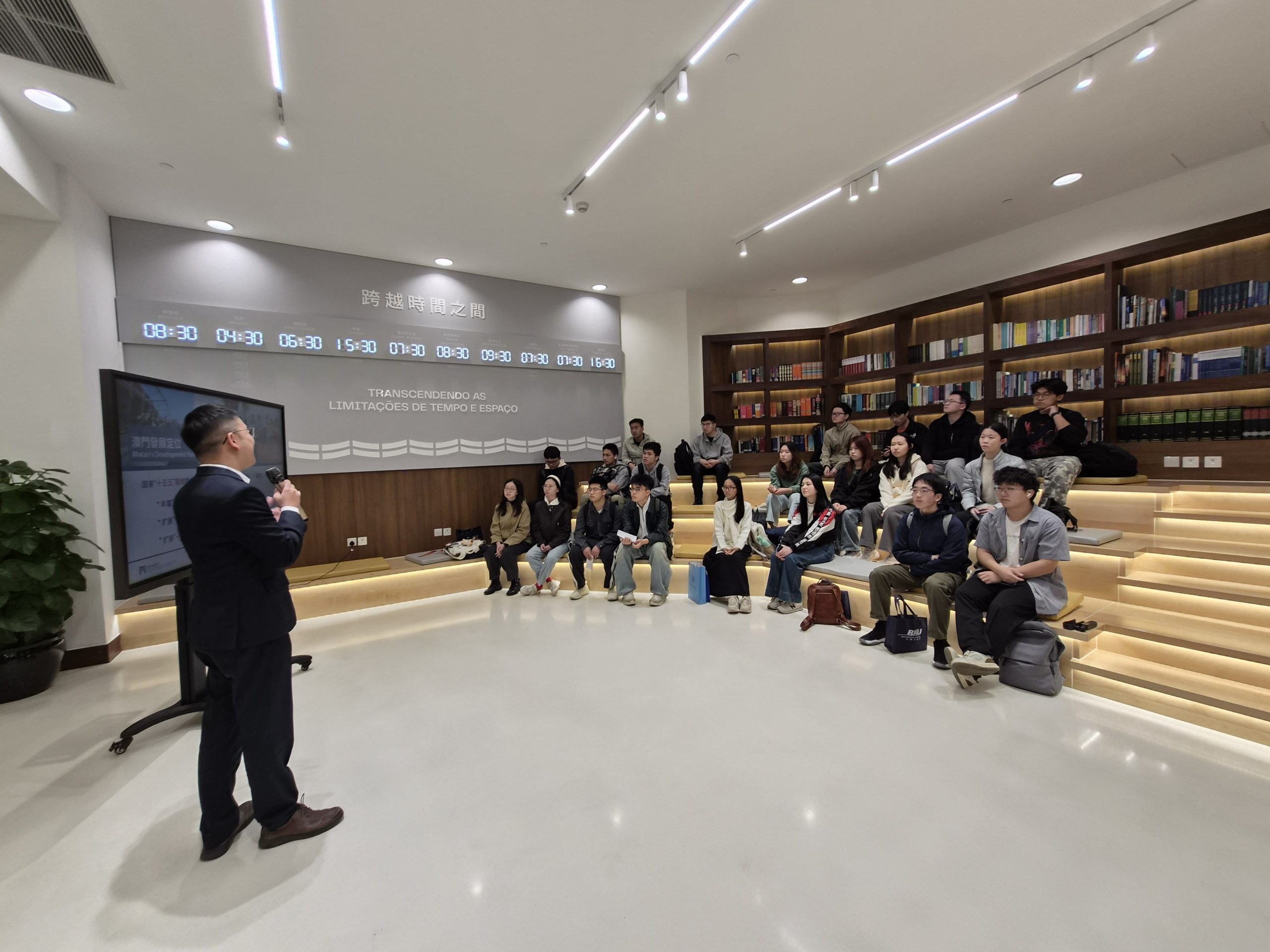 On the second day, the program expanded into Sino-Portuguese trade and regional cooperation. The group visited Banco Nacional Ultramarino (BNU) and the Commerce and Investment Promotion Institute, and was welcomed by the General Manager, Lawrence Kong, from BNU, and representatives of the institute, gaining insights into the roles of Portuguese-speaking financial institutions and government agencies in Sino-Portuguese economic and trade cooperation. A focused discussion on “Risk Assessment Models and Business Logic in Green Cross-Border Operations” allowed students from both colleges to share unique perspectives on sustainable investment and risk management, while exploring how youth can contribute innovation and leadership within the framework of the Belt and Road Initiative and Sino-Portuguese collaboration.