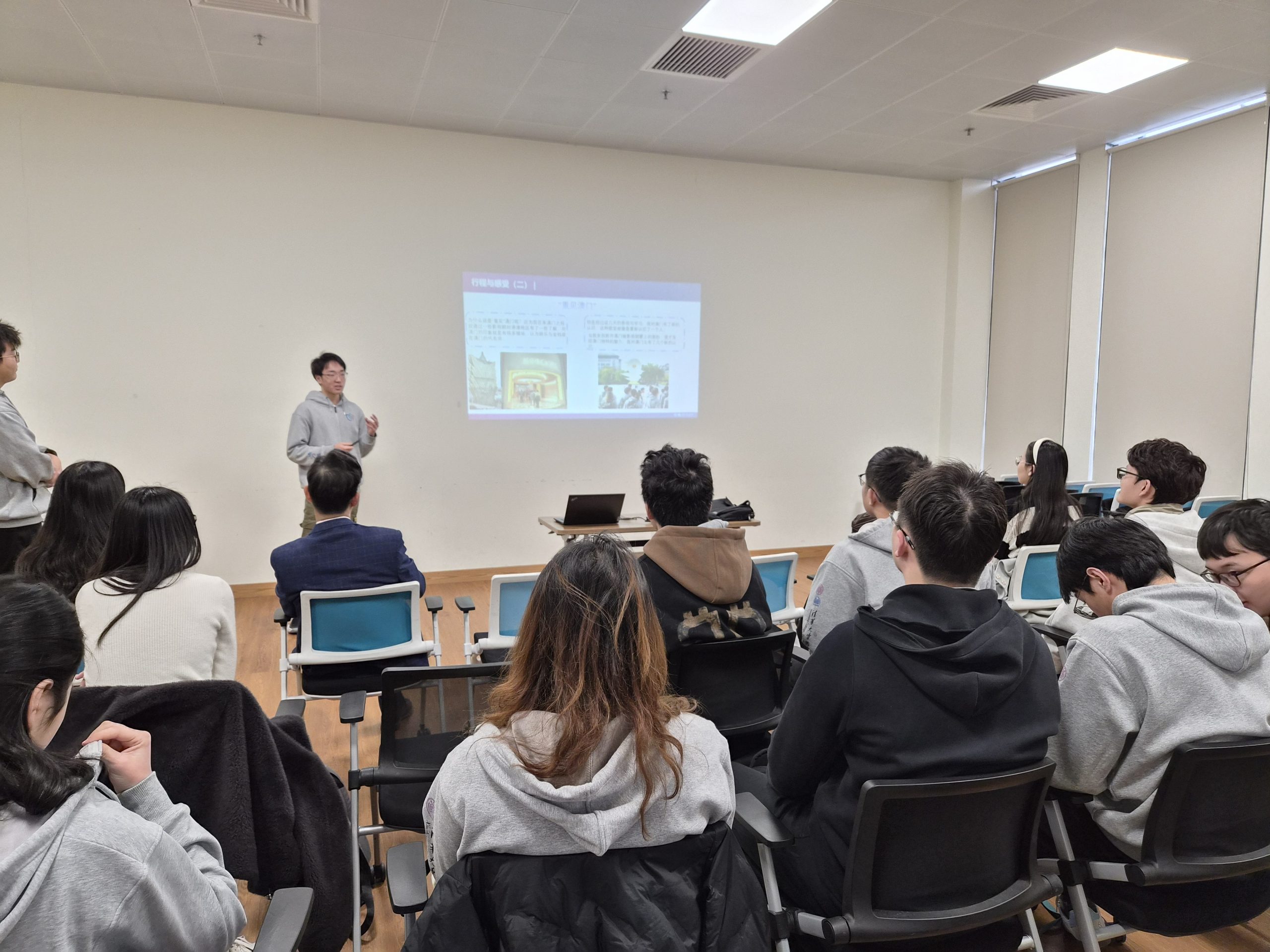 活動首日,團隊自澳大N1聚賢樓出發,在珍禧書院學生領袖譚晨同學的帶領下,展開校園導覽。隨後,珍禧書院院長許世全教授主持歡迎儀式,向秀鍾書院代表——嚴柳新助理教授率領的15人團隊致以熱情歡迎。許院長詳細介紹澳大書院教育模式、設施與書院育人理念,開啟一場輕鬆而富有啟發性的對話,為此次交流奠定良好基礎。