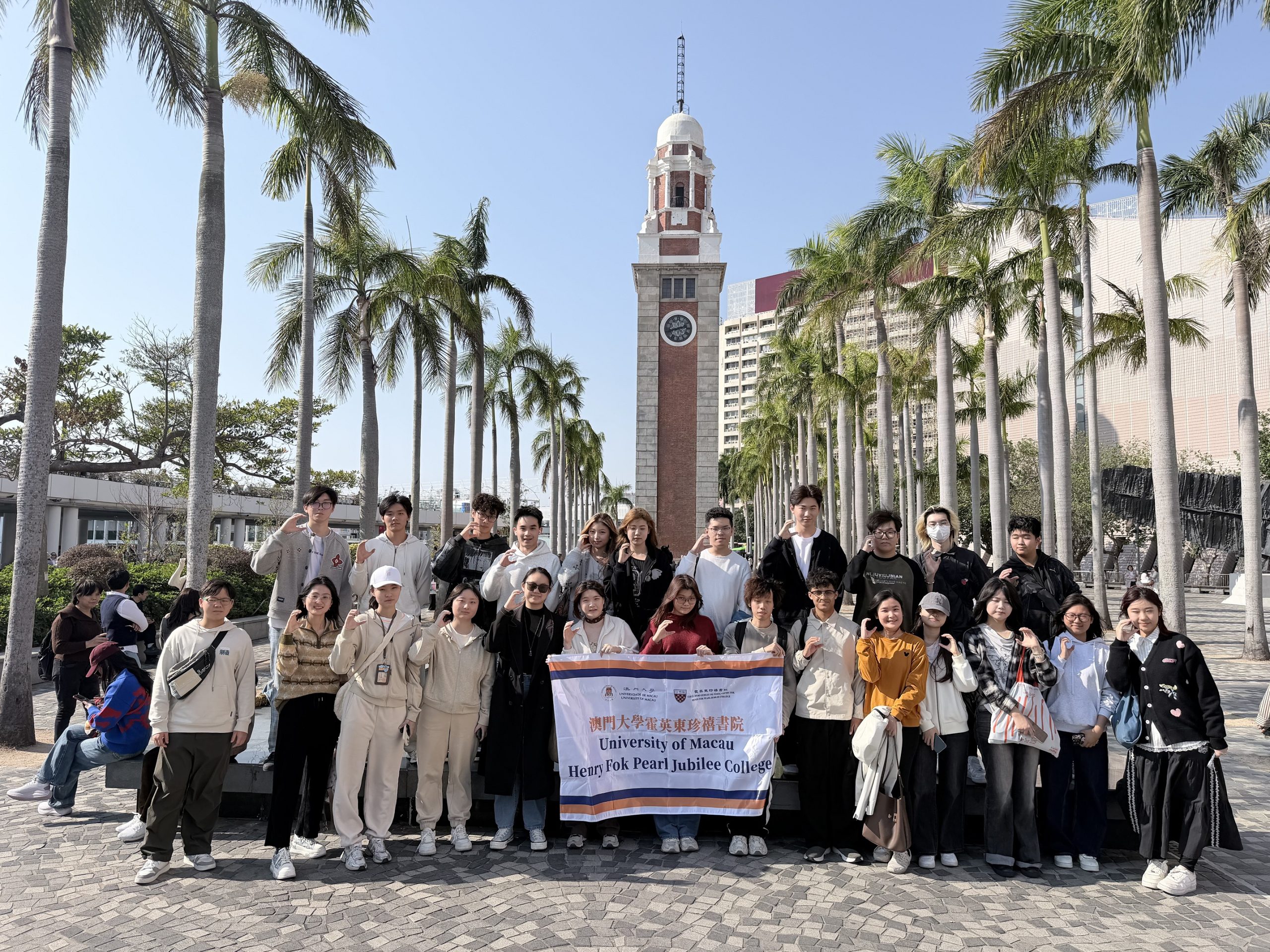 澳門大學霍英東珍禧書院閱讀閣(Reading Club)策劃的「港島浮生 ‧ 一日輕旅」活動順利舉辦。師生一行25人,於2026年1月17日,先後走訪M+博物館、尖沙咀鐘樓、1881 Heritage、維多利亞港、金紫荊廣場及香港回歸紀念碑等地標,在一日的行走與體驗中,感受香港的文化魅力與歷史底蘊,收穫豐富而獨特的文化體驗。
