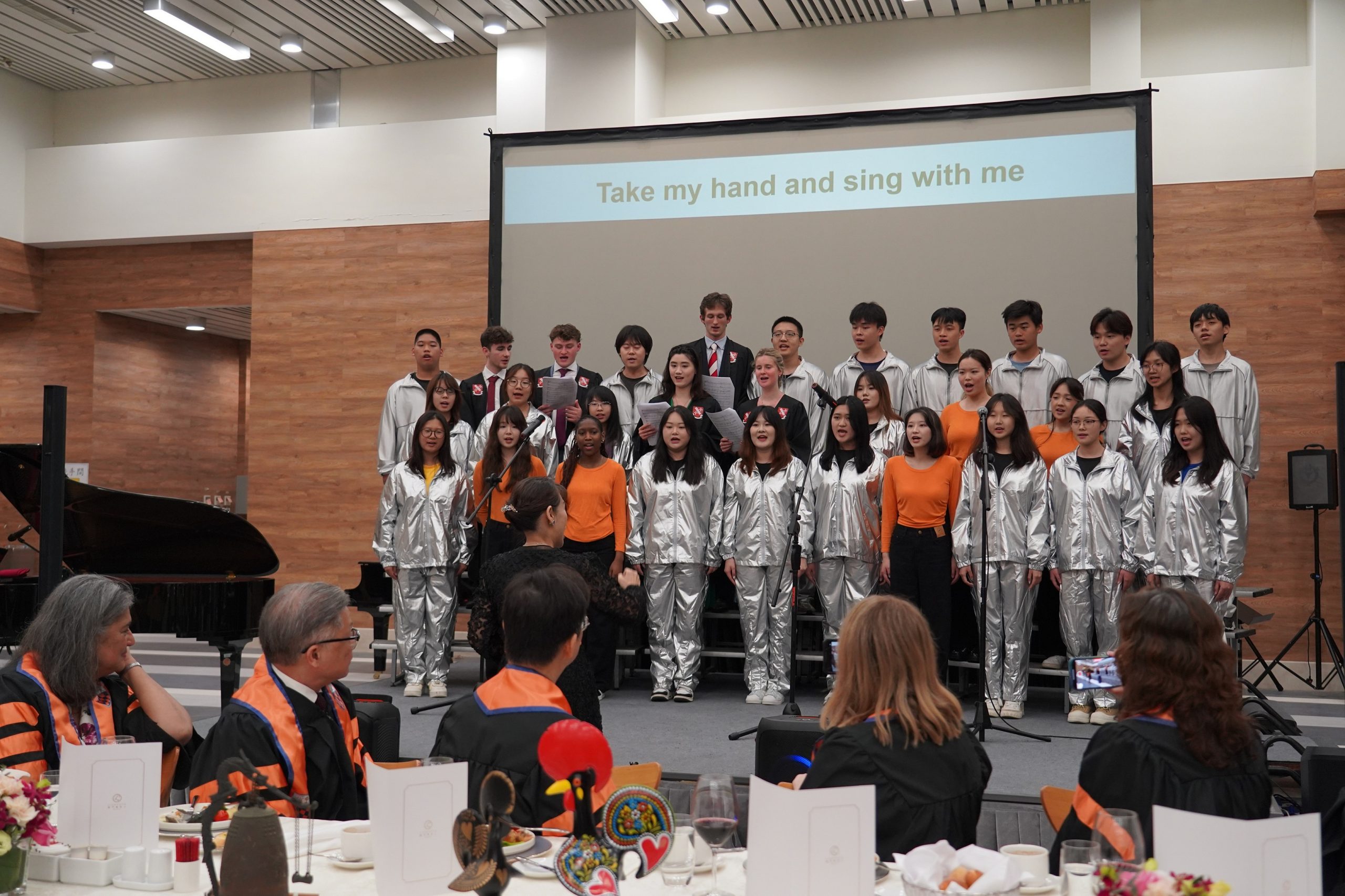 在書院高桌晚宴上,格雷書院院長Sonia Virdee教授應邀發表主題演講,寄語青年學子珍惜跨文化友誼,成為連接東西方的橋樑。兩院合唱團攜手獻上多首動人曲目,歌聲悠揚,為現場增添濃厚的藝術氛圍。兩院師生在莊重而溫馨的氛圍中交流暢談,共敘友誼。
